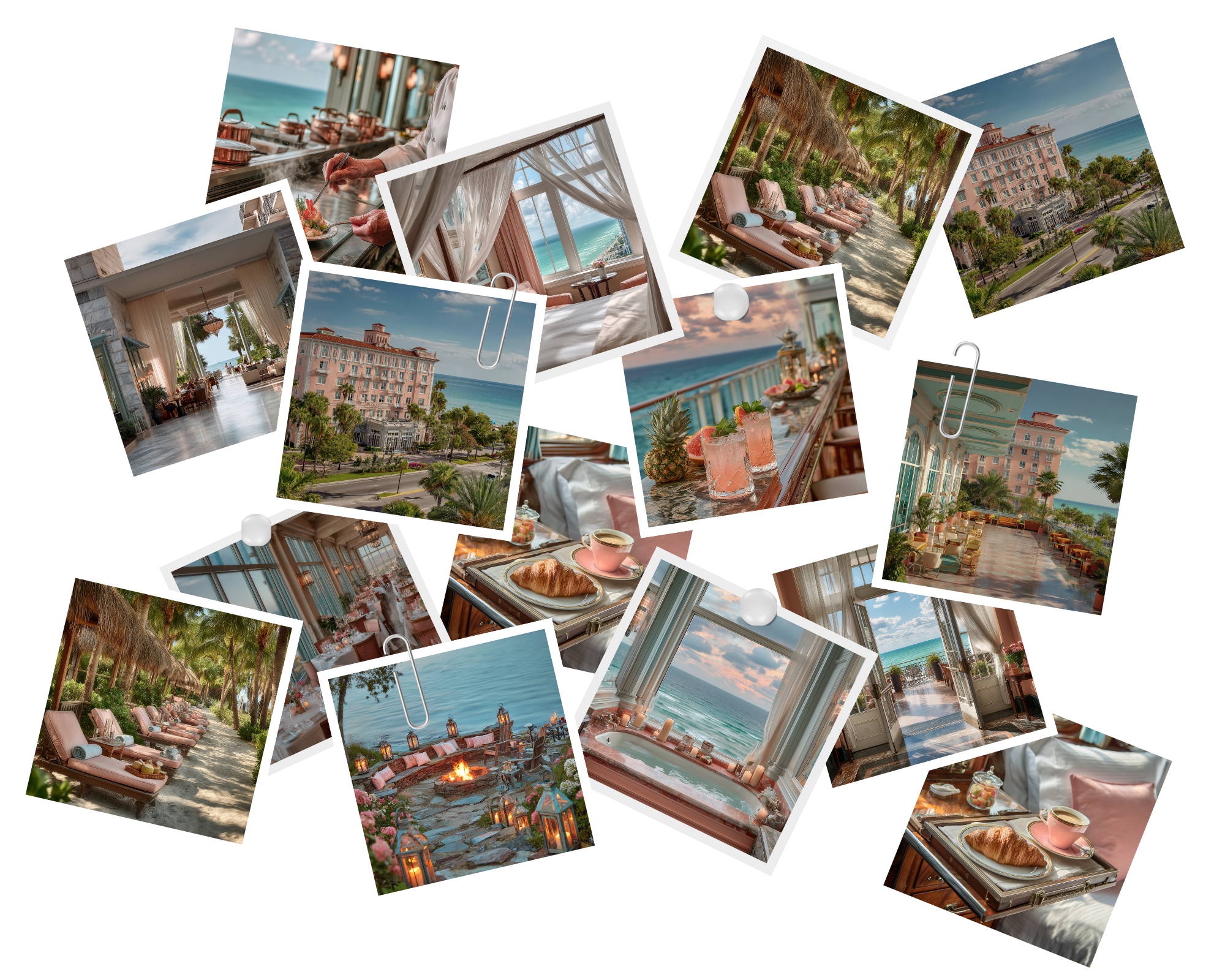 For a story like A View to Fall For, that might look like a save-the-date announcement styled as a glossy hotel reopening invite, complete with evocative imagery and subtle hints of conflict. Characters can be introduced through cinematic portraits paired with sharp one-liners that tease their roles. Location reveals show off moody glimpses of the seaside hotel, highlighting both its faded charm and its polished transformation.