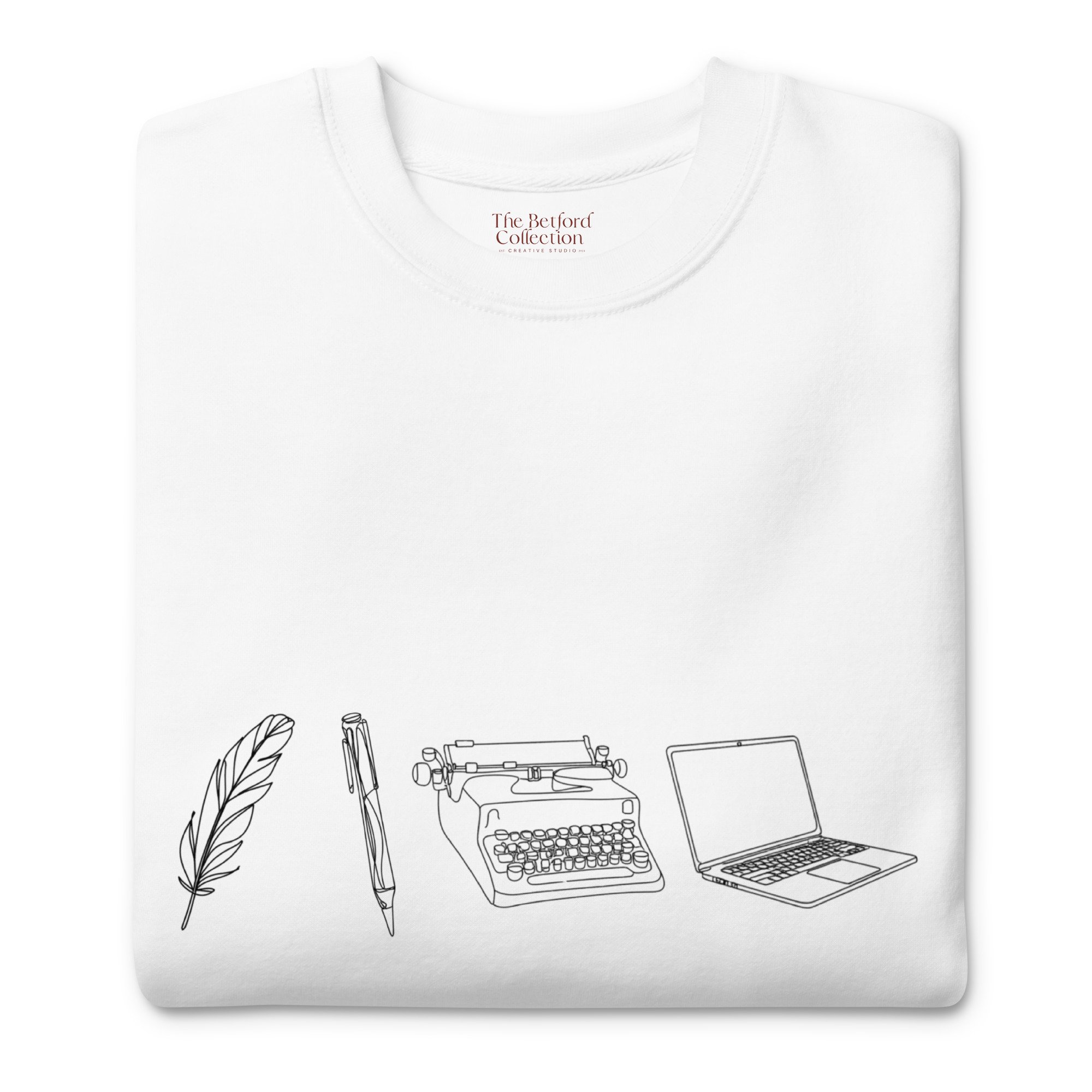 From quill to keyboard — three eras of storytelling, rendered in fine line art. For the writer who carries every version of the craft.